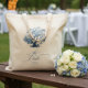 Diese sehenswerte Totentasche hat die zeitlose Eleganz einer klassisch blauen und weißen Palette, ein blühendes Chinoiserie Baummotiv und eine wunderschöne Kalligraphie der "Bride". Die Kollektion zeichnet sich durch raffinierte Muster und zarte Motive aus, die von traditionellem chinesischen Porzellan inspiriert werden und eine raffinierte und romantische Ästhetik schaffen. Von den wunderschön gestalteten Einladungen bis hin zur Koordination von Party und Dekoration, jedes Detail ist sorgfältig gestaltet, um ein Gefühl von Anmut und Charme zu Ihrem besonderen Tag. Persönlich gestalten Sie jedes Stück mit Ihren Details für ein wirklich einzigartiges Hochzeitserlebnis. Suchen Sie die ID1094, um alle koordinierenden Produkte in dieser Sammlung zu sehen.