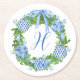 Chinoiserie Wreath Christmas Monogram Runder Pappuntersetzer