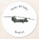 Chinook Heerhubschrauber Cartoon Illustration Runder Pappuntersetzer