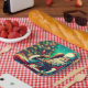 Eine niedliche Aquarellkunst, die den Weihnachtsmann mit einem Teller Schokoladenkekse an der Weihnachtsfeier mit Vintagen Farben zeigt.
