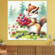 Cute joyful watercolor chipmunk holding berries. Great for kids. Adults. And for chipmunks lover.