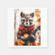 Ein Chipmunk in einem roten Schal spielt Gitarre unter den Herbstblättern. Gemütliche Waldviben treffen auf lustigen Tiercharm.