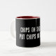 Chips auf Schultern Chips in Taschen stecken Zweifarbige Tasse