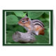 Ein niedlicher Chipmunk wird abgebildet, da er auf einem Holzgelände mit viel Grün dahinter steht.