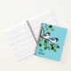 Ein Paar Kicherblätter auf einem Baumzweig mit blauem Hintergrund, gedruckter Text auf Notebook-Cover kann geändert und personalisiert werden