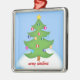 Ausrüstungsbeschreibungen ein niedlicher kleiner Weihnachtsbaum im Schnee auf einem hellblauen Hintergrund, mit buntem kleinem Dornlogo verziert. Kundengerechter Text sagt "frohe Weihnachten." Klicken Sie an "besonders anfertigen ihn." zu ihn ändern.