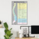 Spinal Nervenfunktion Poster. Das Poster listet die Auswirkungen von Nervenstörungen auf Körperareale und mögliche damit verbundene Symptome auf. Die Symptome einer Störung des Nervensystems sind nach dem Spinalwert vom Halswirbel bis zum Sacrum aufgelistet.