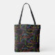 Chiropraktor personalisierte Totbeutel mit farbenfrohen Formulierungen auf schwarzem Hintergrund.