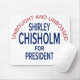 Diese Wiedergabe ist basierter 1972 Kampagnenknopf für Shirley Chisholm, die erste afro-amerikanische Frau, zum für Präsidenten zu laufen.