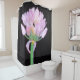 Das schlichte und dennoch dramatische Bild dieses Duschvorhangs ist ein Originalfoto von ZoeSPEAK einer blühenden Pflanze von Küchenchefs. Das Foto in der Nähe ist mit einer hellen Lavendel-Blume über einem hellbläulich-grünen röhrenförmigen Stamm ausgestattet. Der dunkle Hintergrund zeugt von der Schönheit dieses köstlichen Krauts.