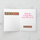 Sag "Danke" zu einem Quilter, Quilt-Liebhaber oder jedem mit dieser farbenfrohen, anpassbaren Grußkarte. Fügen Sie Ihre eigenen Wörter und Namen hinzu. Die Stimmungswörter in der Karte können auf Ihre eigenen Worte angepasst werden. Diese originelle Quilt-Kunst macht eine lebendige Farbnote oder Grußkarte. Quilt Art basiert auf originalen Kunstwerken, mit bevorzugten Patchwork-Quiltblöcken und einzigartigen Blöcken in lebhaften und dynamischen Farben von Orange, Gelb, Rosa, Türkis und Kalkgrün auf einem warmen schokoladenbraunen Hintergrund für eine schöne Farbpalette. Auf der Vorderseite der Karte befindet sich ein grüner Oval, der "Danke" oder einen anderen Gruß Ihrer Wahl sagt. Zeigen Sie Ihre Liebe, mit diesen Quilt-Art-Designs mit anderen Quilt-Art-Produkten zu quiltieren. Quilt art ist eine originelle Kunst aus Stoff und Quilt Designer Phyllis Dobbs und ist in einer Stoffsammlung von Quilting Treasures. Diese Kunst ist auf anderen Produkten und in verschiedenen Farben erhältlich. Mehr Produkte gibt es im Phyllis Business with Flair Store. Passend zu koordinierenden Briefmarke, Umschlägen, Aufklebern und Rücksendeadressen-Aufklebern.
