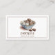 Die Visitenkarte eines Schokoladenkartenlesers mit einer bemalten, jugendlich aussehenden Schüssel mit Pralinen, einer hübschen Grenze und einer einzigartigen dekorativen Schrift für Ihren Firmennamen. Für Schokoladenhersteller, Trüffel und andere Konfektionen. Fügen Sie Ihre eigene Beschreibung auf der Rückseite der Karte hinzu, Sie können auch aus unseren Schriften und Ihrer eigenen Farbästhetik wählen. Blasser Kakaobraun auf der Rückseite der Karte.