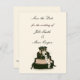 Ein klassisches Design mit einem vierstufigen Hochzeitskuchen in Schokoladentönen. Weiße Blume mit braunen Akzenten und hübschen Bändern kaskadieren. Passen Sie Ihre Wünsche mit Namen und Hochzeitstermin an.
