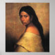Porträt einer jungen Choktawfrau, die ihr Körper den links zuwandte, ihr Kopf kehrte nach vorne zurück und ihr Blick richtete sich auf den Betrachter. Sie trägt ein Ohrring-Paar und ein Schulterkleid aus Tierhaut. Ihr langes dunkles Haar ist in der Mitte geteilt und fällt über ihren Rücken, Öl auf Leinwand, 30 x 25 in. Gemalt von P. Romer