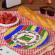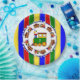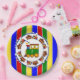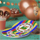 Der Choo Choo Train Birthday Party Paper Teller mit fett prächtigen Farben, hellrot, blau, grün, gelb und orange.