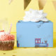 Ein niedliches Design mit kleinen Choografien trainiert in hellen Farben, mit einem Rauch, der die Spitze ausstrahlt. Ein sanft blauer Hintergrund.