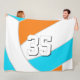 Choose your own colors! This team colors volleyball blanket features the abstractly oversized image of a bright blue, orange and white volleyball that completely covers the front of the blanket - personalize with the athlete's jersey number - to change the colors of the volleyball's blue & orange panels and the text, click the "Edit this design" button (above) to access the Zazzle design tool, then select the volleyball image layer and replace the current colors with your team's colors (you can select colors from Zazzle's color palette or input a color's HEX code) - by katz_d_zynes