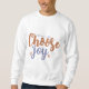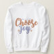 The image displays the uplifting phrase “Choose joy” written in a decorative cursive font. The word “Choose” is in brown, while “joy” is in soft, light purple, adding a gentle and cheerful mood. Above “Choose” is a small right-pointing arrow, as if nudging the viewer toward happiness. Surrounding the word “joy” are tiny decorative elements like heart symbols and arrows, enhancing the joyful and encouraging tone. This design is ideal for affirmation-themed products or items that inspire positivity.