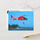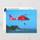 Foto eines roten Rettungshubschraubers der US-Küstenwache mit einem Taucher, der aussteigt