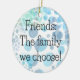 Feiern Sie die Freunde, die sich wie Familie fühlen, mit diesem strukturierten Polka Dot-Ornament mit der herzlichen Botschaft: "Freunde: die Familie, die wir wählen." Benutzen Sie es als festliches Ornament oder als einzigartiges Geschenketikett, um jedem Anlass einen Farbtupfer und eine Liebe hinzuzufügen.