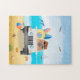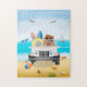 Ein Clowhund, der am Strand fährt, ist eine Geschenkidee für jemanden, der diese Hunderasse Liebe.