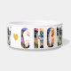 Dieses schöne, hochwertige Haustiergericht verfügt über eine Creme, Blue, Red und Black Chow in den Buchstaben. CHOW wiederholt sich dreimal um die Schüssel mit goldfarbenen Herzen verstreut!! Sehr langlebig und leicht zu reinigen!!