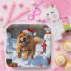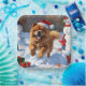 Eine flauschige Chow Chow läuft fröhlich durch die schneebedeckte Winterszene und trägt einen festlichen roten Weihnachtshut. Dieses charmante Design hebt den dicken Mantel der Rasse hervor, den Löwenmund und die würdige Persönlichkeit, während es die Wärme und den Geist der Urlaubssaison einfängt. Ein herzlicher Winterurlaub voller festlichen Charme.