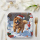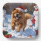 Chow Chow läuft im Schnee mit Weihnachtsmütze Pappteller