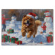 Eine flauschige Chow Chow läuft fröhlich durch die schneebedeckte Winterszene und trägt einen festlichen roten Weihnachtshut. Dieses charmante Design hebt den dicken Mantel der Rasse hervor, den Löwenmund und die würdige Persönlichkeit, während es die Wärme und den Geist der Urlaubssaison einfängt. Ein herzlicher Winterurlaub voller festlichen Charme.