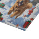 Chow Chow läuft im Schnee mit Weihnachtsmütze Schneidebrett
