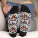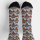 Chow Chow läuft im Schnee mit Weihnachtsmütze Socken