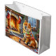 Chow Chow Sitting Fireplace with Christmas Lights Große Geschenktüte