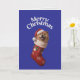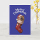Eine Chow Chow, die eine Weihnachtsmannmütze trägt, bleibt aus einem Weihnachtsstapel.