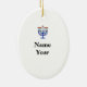 Dies ist ein Chrismukkah-Ornament für eine Familie oder nur eine Person. Die Vorderseite besteht aus einer Mischung jüdischer und traditioneller Weihnachtsbilder/Symbole wie Misteloe, Weihnachtsbaum, Elfen, einem jüdischen Mann, der einen Kippah trägt, mit einem Süßwarenstock in der Tasche und einem dreiel vor ihm. Auf der Rückseite können Sie entweder den Vor- oder Nachnamen (Familienname) und dann das Jahr angeben. Designed by Sheila Cicchi, Brownielocks.com. Alle Rechte vorbehalten.