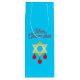 Wine is a great Chrismukkah gift (for the adults of course) so why not get a special wine Chrismukkah gift bag. This bag features a Hanukkah blue background with the words, "Merry Christmukkah" in red at the top. Right below the words, is the Star of David with a couple red ornaments hanging on the bottom. The design also appear on the back side of the bag. A fun bag for the holidays. Copyright Kathy Henis