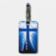 Christ Kruzifix Silhouette auf blauem Hintergrund mit Lichtstrahlen von hinten. Christentum, Religion, Ostersymbol der Auferstehung.