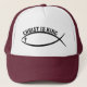 "Jesus Fish" (auch Ichthys genannt), das ein Kreuz für ein Auge hat. Im Text oben steht "Christus ist König".