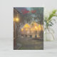 Eine bezaubernde Straßenszene mit leuchtenden Lampen und geschmückten Geschäften, die durch den Nebel des Abends sanft beleuchtet werden und eine warme und einladende Atmosphäre schaffen.
