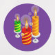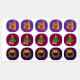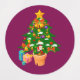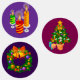 Dieses Bild zeigt eine Sammlung von runden Weihnachtsaufklebern mit festlichen Entwürfen, einschließlich Kerzen, geschmückten Weihnachtsbäumen mit Geschenken und Weihnachtskränzen. Die farbenfrohen Muster sind ideal für Dekoration, Etikettierung oder Geschenkverpackung während der Ferienzeit.