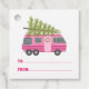 Illustration eines rosa RV mit Weihnachtsbaum an der Spitze befestigt.