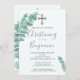 Eine weiche Eukalyptus-Blätter und Filialfeiern oder Taufe. Das Design ist grün und weiß mit einem Text, der leicht auf Ihre Informationen geändert werden kann. Wählen Sie aus einer Reihe von Papiertypen.