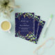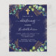 Bitte beachten Sie, dass diese Einladung auf Flyer Papier und sehr dünn ist. Umschläge sind nicht enthalten. Für dickere Einladungen (gleiche Gestaltung) besuchen Sie bitte unseren Shop. Marineblau mit Eukalyptusgrün und goldenen Blätter und Imitaten goldenen Glitzer Glitzern. Ein goldenes Kreuz. Personalisieren und den Namen und die Zeremonie Details des Kindes. Zurück: marineblau Hintergrund.