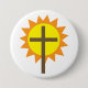 Make a small but powerful statement with this religious pin back button featuring a minimalist brown cross and a bright yellow sun. This affordable faith accessory is perfect for decorating backpacks, denim jackets, or hats, and serves as an excellent giveaway item for church festivals and Sunday school classes.