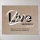 Stilvolles rustikales Aussehen inspirierendes Christliches Poster auf der Basis von JOHN 10:10. Text liest LIVE ABUNDANTLY in schwarz-weiß Typografie. Die Schriftzeichen sind vollständig geschrieben, aber dieser Text ist KUNSTBAR, sodass Sie die Bibelübersetzung in Ihre Lieblingsversion ändern können.
