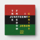 Stilvolle Pan African JUNETEENTH-Plakette mit Christlicher Bibelreferenz, die das inspirierende Zitat TRUE FREEDOM IN CHRIST JESUS in einem Kreuzworträtformat einschließlich JUNETEENTH zeigt, und ist Set gegen rote, schwarze und grüne Tafeln (Farben der PAN AFRICAN FLAG). Der Haupttext basiert auf der Schriftzeichen-Referenz von John 8:36 - ER, DER DER SOHN (JESUS) SETS FREE ist FREE. Die Bibelreferenz JOHN 8:36 ist anpassbar, sodass Sie den Text durch Ihr MONOGRAM ersetzen können. Diese 19. Junitagung wäre ein ideales Geschenk für den 19. Juni, den Schwarzen Geschichtsmonat, Weihnachten, Geburtstag und das ganze Jahr hindurch. Seien Sie bereit, Ihren Glauben zu teilen, denn dies würde auch einen großartigen Konversationsstart.