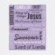 Jesus ist ein schöner Name für einen wunderbaren Erretter. Es bedeutet "Gott, der gekommen ist, um uns Retten". Hier sind siebzehn Namen, die in der Bibel benutzt werden, um Jesus zu beschreiben. Moderne, schwarz-graue Schrift mit stilvollen Schriftart. Lila Hintergrund. Benutzerfreundliche Vorlagen zum Hinzufügen (oder Subtrahieren) von Text.