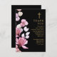 Eine Christliche Schwarz-Gold-Beerdigung Dankeschön-Karte mit rosa Blume, personalisiert mit Ihrem eigenen Dankeschön-Nachricht. Entwickelt von Thisisnotme©