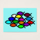 Eine Schule mit Christlichen Fischsymbolen in Regenbogenfarben, die alle in eine Richtung schwimmen, die mit einem Ziel vereint ist.