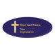 Personalisieren Sie dieses moderne 3" x 2" ovale Acryl-Namensschild mit magnetischem Rücken mit Ihrem eigenen Text. Im Christentum ist das goldene Kreuz auf einem königlich blauen Hintergrund ein mächtiges und dauerhaftes Symbol, das Gläubige an ihren Glauben und ihre Hingabe erinnert. ***Bitte beachten Sie, dass die Farbe Gold nicht metallisch ist.***