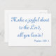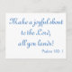 Schreib Gott mit dieser hübschen Postkarte. Set auf weißem Hintergrund: "Mach dem Herrn einen fröhlichen Halt, alles, was du landest!" Psalm 100:1 ist in schönem blauen Schriftart geschrieben. Bestelle noch heute!